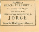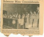 | Notas periodistas en relación a la concelebración de la misa de acción de gracias por la ordenación de Jorge García Villarreal el 28 de febrero de 1970, en la catedral de Santiago, en Saltillo. Entre otros sacerdotes participaron Darío Bragado y Salvador Ventura. Incluye una felicitación de la familia Rodríguez Álvarez. |