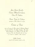 | Juan García González, Carmen Villarreal de González, Oscar Cárdenas y Sirenia Treviño de Cárdenas participan el matrimonio de sus hijos Carmen Villarreal y Oscar Cárdenas. La ceremonia la celebrará el obispo don Luis Guízar Barragán en el templo de San Juan Nepomuceno de Saltillo, el 8 de mayo de 1948. |