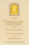 | María García de Rodríguez y Ramón Rodríguez Narro participan el nacimiento de su hijo Ramón Rodríguez. Ramón nació el 8 de septiembre en el Rancho el Morillo en Saltillo y fue bautizado por el obispo doctor Jesús María Echavarría en su oratorio particular. Fungieron como padrinos sus abuelos paternos Herminio Rodríguez y Francisca Narro. |