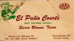 | "El Patio Courts ofrece "los mejores moteles occidentales" en Sierra Blanca, Texas. |