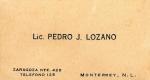 | Tarjeta de presentación del licenciado Pedro Lozano. |