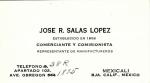 | Tarjeta de presentación de josé Salas López comerciante, comisionista y presidente de manufactureros. |