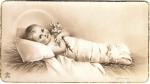 Estampa conmemorativa para celebrar el recuerdo de recibir, por primera vez, la sagrada comunión. Al frente tiene la imagen de un niño arropado, y por el reverso lleva una nota que conmemora el momento: "Donde está Dios, está el cielo... Desde hoy el Sagrario será mi cielo aquí en la tierra". Abajo de la oración dice: "Recuerdo del día en que por vez primera tuve la dicha de recibir la sagrada comunión, San Luis Potosí, 26 de Mayo 1938". |