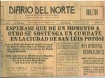 | El Periódico "Diario del Norte" publica como noticia principal: "Espérase que de un momento a otro se sostenga un combate en al ciudad de San Luis Potosi". |