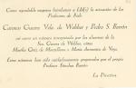 | Invitación para presenciar el baile de los profesores Carmen Guerra viuda de Webber y Pedro Sánchez Barrón, así como el de las alumnas Martha Ortiz de Montellano y María Antonieta de Vega. |