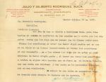 | Julio Rodríguez escribe el 26 de octubre de 1927, a sus hermanos, socios de “Rodríguez Hermanos” para tratar el asunto de la partición de los ranchos y comunicarles que no puede hacer ningún desembolso "...salvo que la sociedad tuviera fondos estaría dispuesto a hacerlo”. Adjunta una nota en la que informa como deberían repartir su parte de las haciendas de “Tinajuela, San Carlos y San José”. |