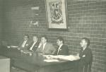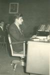 | Examen de graduación de abogado de Jorge García Villarreal en septiembre de 1958 en la Universidad Nacional Autónoma de México. El lugar es un salón. Se observa el escudo de la UNAM. Entre otras fotografías destacan el alumno presentando su exámen, el jurado y familiares y amigos felicitando al nuevo licenciado. Entre otras personas aparece con su hermano Hernán García y sus amigos Edmundo Rodríguez y Luis Manuel Aguirre. |