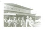 | Grupo de siete señoras. Llevan en el cuello collares hawaianos. La tercera de izquierda a derecha es Carmen Villarreal de García. Al fondo un edificio. |