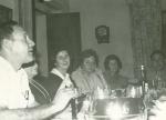 | Celebración de una fiesta en el comedor de la casa de la familia García Villarreal en Saltillo. A la izquierda Ramón Rodríguez, enseguida Sofía Dávila de Villarreal, la tercera Carmen García, luego Mae Narro de García y al final María García de Rodríguez. De frente Oscar Cárdenas. Se encuentran en el comerdor de la casa. Al fondo se observa una puerta, un reloj y una cortina. Sobre la mesa hay vasos y una botella. |