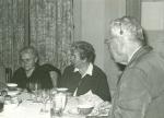 | Celebración de una fiesta en el comedor de la casa de la familia García Villarreal. De espalda se aprecia a Juan García González y luego a su esposa Carmen Villarreal. La última es María Luisa Villarreal de Garza. Al fondo se ve una cortina y sobre la mesa, se aprecian tazas, vasos y copas. |