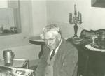 | Celebración de una fiesta en el comedor de la casa de la familia García Villarreal. De frente Juan García González. Al fondo se aprecia un candelabro y unos adornos. |