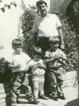 | Retrato de Jorge García y sus tres sobrinos de derecha a izquierda Rodolfo, Rolando y Hernán García Garza. Todos llevan camisa de manga corta. Se encuentran en el patio de la casa de su madre y abuela. Al fondo un arriate. |