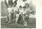 | Familia García Garza. Los padres Hernán García y María Angélica Garza. Los hijos de izquierda a derecha Hernán, Rodolfo y Rolando García Garza. Los papás se encuenteran sentados y dos de los hijos sobre su regazo. El lugar es un jardín con un árbol y plantas al fondo. |
