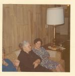| Fotografía de las señoras, de derecha a izquierda, Sofía Dávila de Villarreal y su cuñada María Luisa Villarreal. Se encuentran sentadas en un sillón. Al fondo se ve una pared, una lámpara y una mesa. |