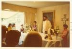 | Jorge García Villarreal oficiando misa. A su lado con chaleco rojo su sobrino Hernán García Garza. Se encuentran en la casa de su prima Josefina Galindo en la ciudad de México. Al lado se ven unas cortinas y al fondo de la mesa dispuesta como altar, un cuadro grande y un Cristo. |
