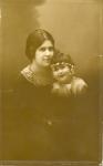 | Retrato de la señora Carmen Villarreal de García con su hija Carmen García en el regazo. La niña adorna su cabello con una corona de flores. |
