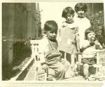 | Fotografía de los hermanos García Villarreal. Carmen, María y Javier. El más pequeño se encuentra sentado mordiendo una pelota. |