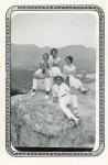 | Grupo de hombres y mujeres entre los que se encuentran los hermanos Guadalupe y José Carlos García de Letona y su prima Concepción Rodríguez Narro. Todos llevan ropa clara y se encuentran en una loma. |