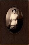 | Fotografía de María Luisa Salas Errázu posando en un balcón, lleva vestido claro y collar de perlas. |