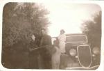 | Fotografía de la familia de la O Salas. El niño Francisco sostiene un rifle mientras que la niña Graciela posa en el auto. |