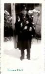 | Fotografía de José Antonio de la O posando en la nieve, lleva gabardina y sombrero. Fechada el 3 de enero de 1939. |
