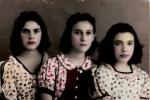 | Fotografía de tres jóvenes con el cabello ondulado y vestido estampado. Al reverso se lee: "Dora, guarda este como prueba del cariño de tu amiga Lupe Mier. Fechada el 4 de junio de 1939 |