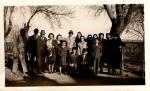 | Fotografía de la familia de la O Salas el día de la boda de Josefina de la O Salas, todos visten ropa de invierno. |