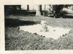 | El bebé Carlos Enríquez Terrazas, acostado sobre una toalla en un jardín. |