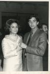 | Bertha Elena Terrazas con su hijo Carlos Enríquez. Ella viste de fiesta y su hijo de traje y corbata obscura. Ambos están tomados de la mano. |