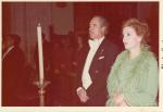 | Boda de Genoveva Falomir, presencian la boda su papá Guillermo Falomir y su esposa Bertha Elena Terrazas. El primero viste de frack y su esposa trae un vestido color verde con plumas al frente. |