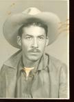 | Fotografía de estudio de Amado Flores Rocha. Porta chamarra de cuero y sombrero. |