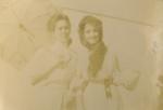 | Francisca Narro Gómez acompañada de su amiga Luisa Stille, quien lleva un paraguas. Ellas se encuentran "en la loma del ranchito". |
