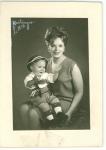 | Retrato de María Torres de Rodríguez con su hijo Herminio a la edad de un año. El niño lleva un traje tirolés y sombrero. |