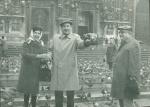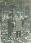 | Serie de dos fotografías de Ramón Rodríguez y su esposa María en la plaza de San Marcos en Venecia, durante su viaje por Europa. Se encuentran rodeados de palomas. |