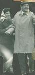 | María García y su esposo Ramón Rodríguez de pie. El viste gabardina y ella lleva una pañoleta en la cabeza. |