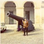 Ramón Rodríguez y su esposa María García frente a un cañon en un museo.