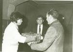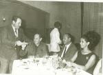 | Serie de tres fotografías de un festejo de navidad para los colaboradores de Ramón Rodríguez Narro. En la primera aparece Ramón Rodríguez entregando un regalo al señor Guerrero. En la segunda con el señor Jasso y en la tercera sentados a la mesa Ramón Rodríguez, el señor Jasso y su esposa, de pie Eleazar Galindo. |
