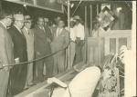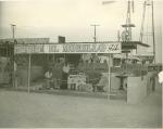 | Serie de dos fotografías del stand de Materiales para Construcción El Morillo, en la feria de Saltillo. En la primera se aprecia el stand y en la segunda a Herminio Rodríguez Narro con un puro en la mano y otras personas mirando el lugar. |