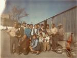 | Serie de dos fotografías, la primera es un grupo de personas, empleados del negocio de tubos de concreto de Herminio y Ramón Rodríguez y la segunda, la fachada del negocio. |