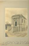 | Vista de la fachada de la capilla del Asilo Maas. Al pie de la fotografía se lee "En la parte de atrás estaban los restos de don Henrique Maas y doña Trinidad, fue demolido por el último patronato". |