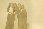| Mujeres con vestido largo y la cabeza cubierta con rebozos. Entre ellas se encuentran las hermanas Stille. |