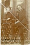 | Guadalupe Rodríguez y su hermano Herminio de pie en el balcón de una casa. Al fondo a través de la ventana se observa la figura de su mamá Dolores Fuentes de Rodríguez. |