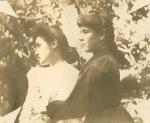 | Francisca Narro Gómez, aproximadamente a la edad de trece años. La acompaña su amiga Guadalupe Siller. Ellas se encuentran en la huerta de Patos, General Cepeda. |
