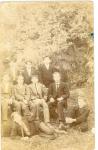 | Grupo de jóvenes en un jardín, algunos se encuentran recostados en el piso, otros sentados y otros más de pie. Entre ellos se aprecia a Gerardo Parada, quien envía felicitaciones de año nuevo a la joven Francisca Narro. |