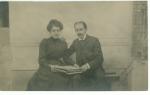 | Cuatro retratos iguales de los hermanos Celia y Herminio Rodríguez Fuentes sentados en una banca en un patio. Herminio tiene su mano sobre el hombro de su hermana. Ambos observan un álbum de fotografías. Uno de los ejemplares lo envía Gilberto Rodríguez a la familia de su hermano Herminio como felicitación de navidad, el 25 de diciembre de 1936 y otro está dedicado a "Herminio y Panchita, 1º de abril de 1945". |