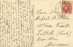 | Artemio de Valle Arizpe envía el 21 de agosto de 1919 postal de Santiago de Compostela, España a Rafael B. Narro. Le escribe que todas las casas de esa ciudad tienen un portal que da a la calle, unos mas altos que otros. Asimismo le comenta que es una ciudad "de tradición y de nobleza". |