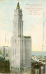 | Edificio Woolworth en Nueva York; sobre la imagen en forma manuscrita dice: "Subimos en dos minutos".