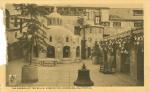 | El jardín de las campanas en el Hotel Mission Inn, en Riverside, California; una leyenda en el reverso detalla que en este lugar hay una colección de campanas de todas partes del mundo, siendo la más vieja del año 1247.